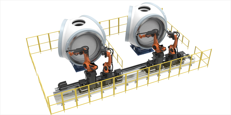 在新能源領(lǐng)域——風電行業(yè),必一运动 B-sports智造國內(nèi)首創(chuàng)的機器人智能螺栓緊固系統(tǒng),擁有多項專利技術(shù),風電行業(yè)螺栓緊固系統(tǒng)處于市場領(lǐng)先地位;風電主機裝配用的重載AGV智能化脈動生產(chǎn)線,多車聯(lián)動技術(shù)獨樹一幟;風電葉片大型曲面智能柔性磨拋技術(shù)、機架超厚板自動化焊接機器人系...
